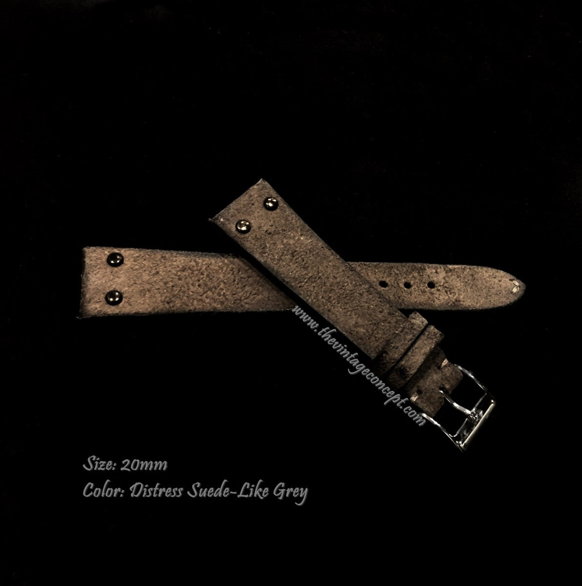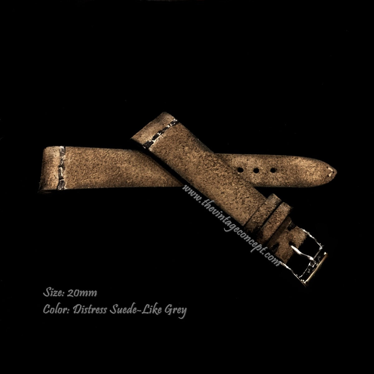 20 x 16mm Vintage Distress Suede-Like Dim Grey Leather Strap