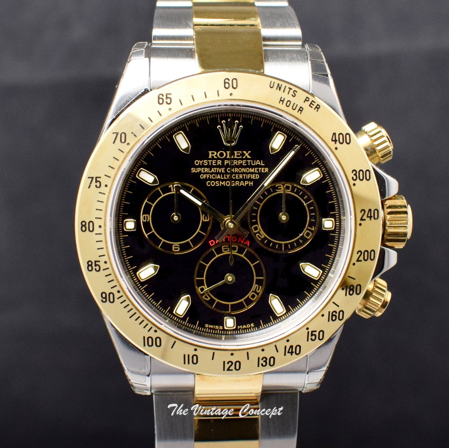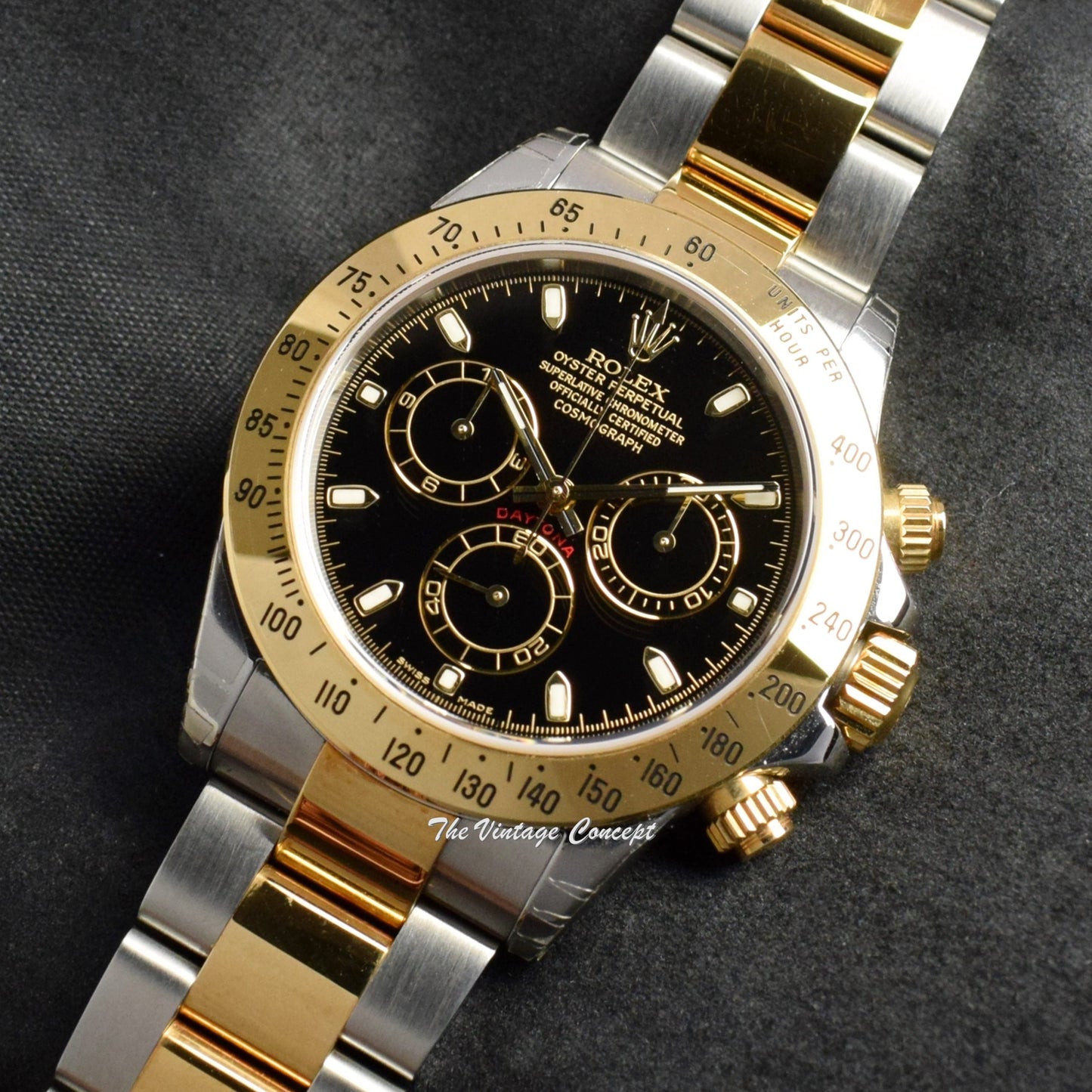 90% NEW Rolex Daytona Two-Tone Black Dial 116523 (Full Set) (SOLD)