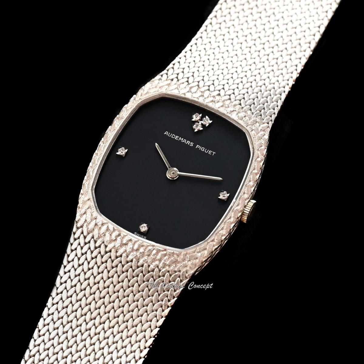 Audemars Piguet 18K White Gold Black Dial w/ Diamond Indexes Manual Integrated Bracelet (SOLD)