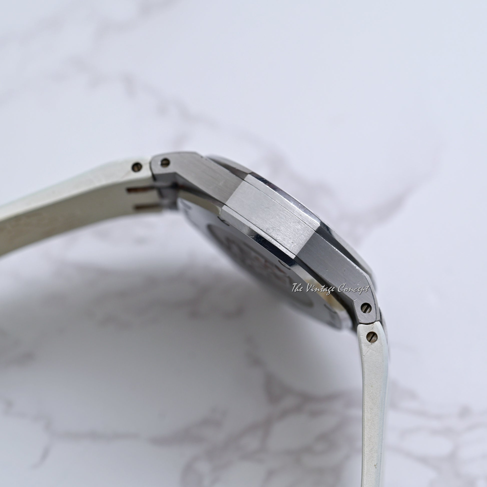 Case: 33mm octagonal Stainless Steel case; Show sign of wear with minor polished from previous; serial numbers engraved on the case back