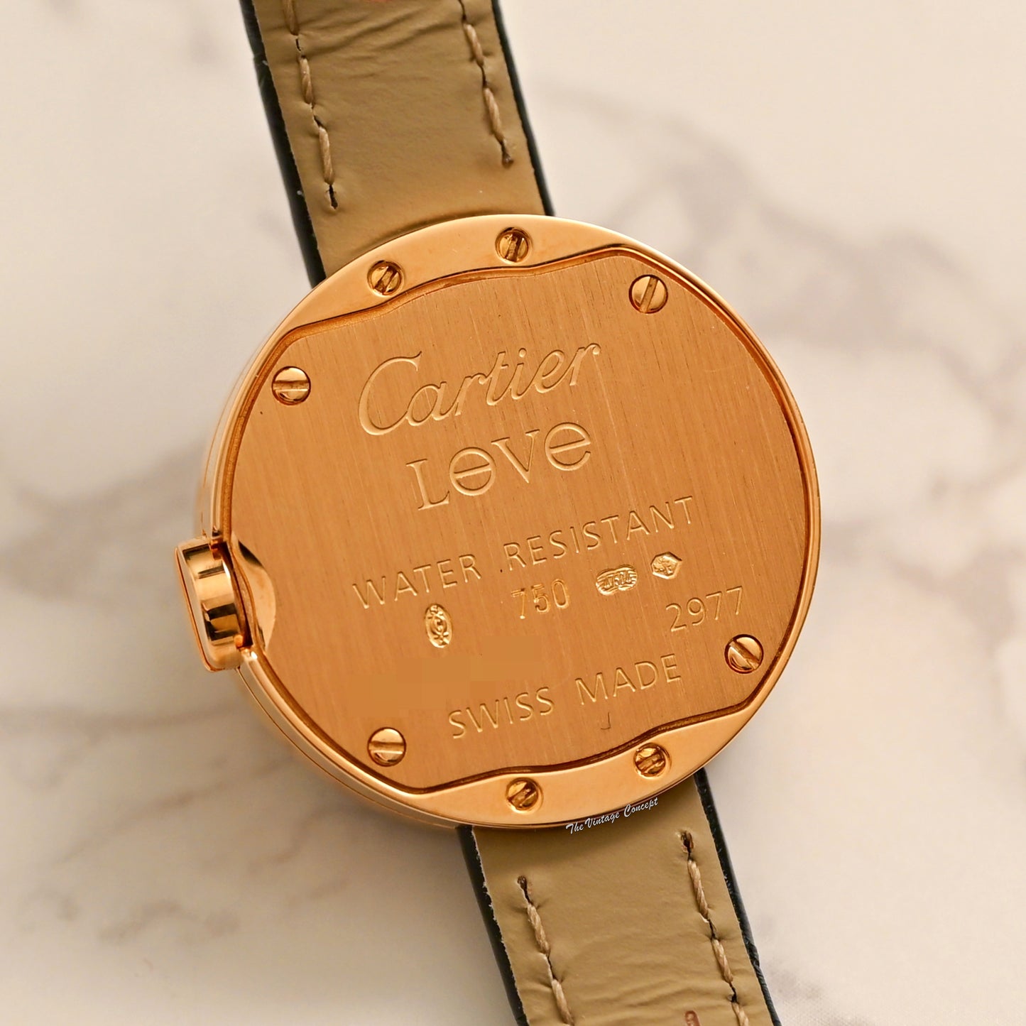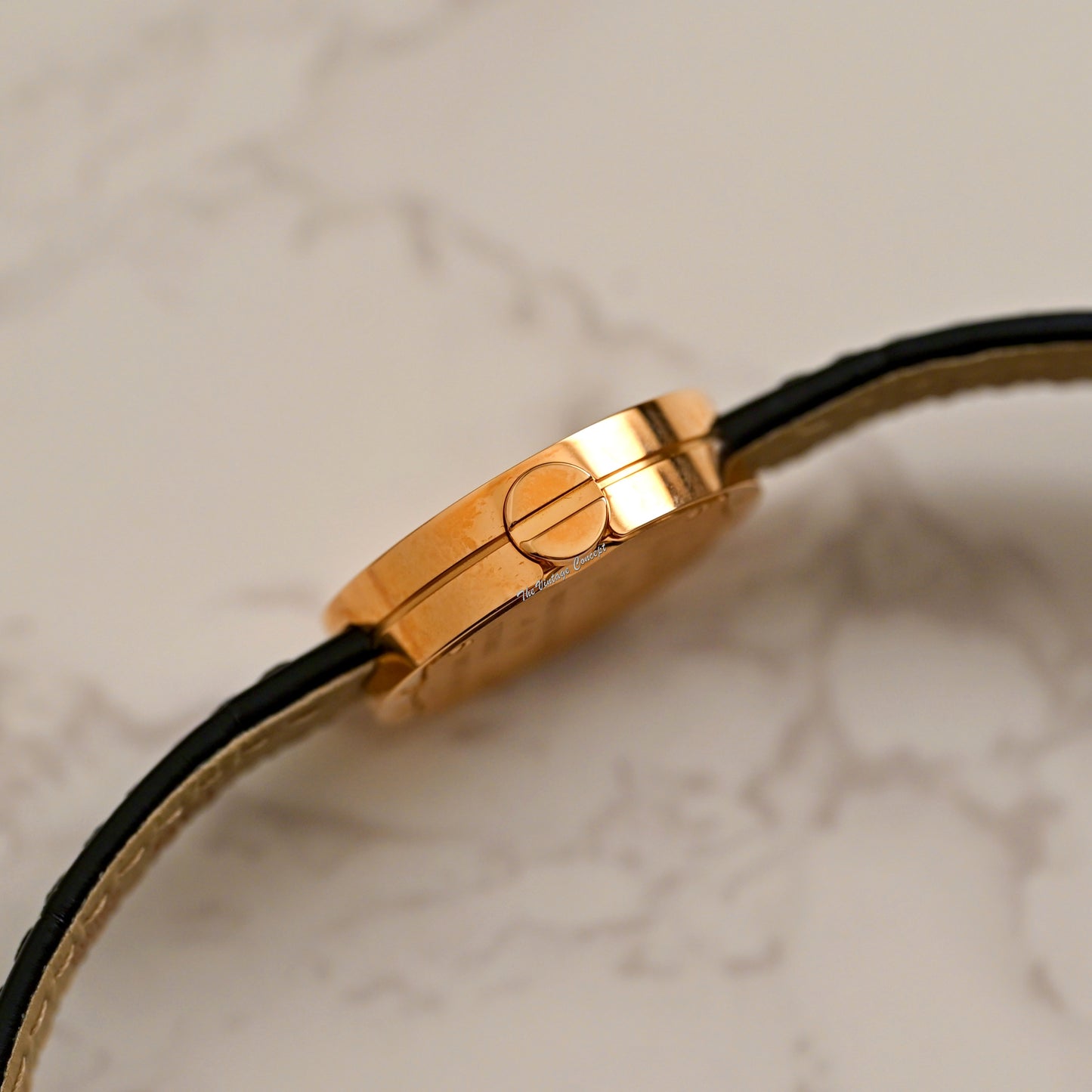 Bracelet: Cartier used Leather Strap w/ 18K rose gold buckle