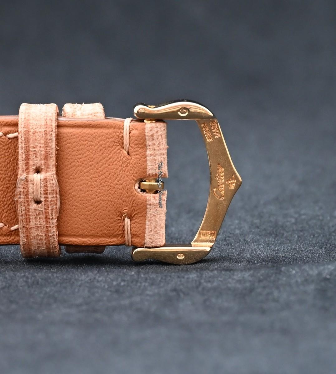 The Santos Dumont, created in 1904 for aviator Alberto Santos-Dumont, is one of Cartier’s most iconic watches, known for its practicality and elegance. This particular CPCP model, from the late 1990s, features a 18k yellow gold case and a pristine dial. The ref. 1576B measures 27mm by 36mm, making it ideal for those with slightly larger wrists. It houses the high-quality FP manual winding movement and is in exceptional condition, making it a valuable addition for any collector.