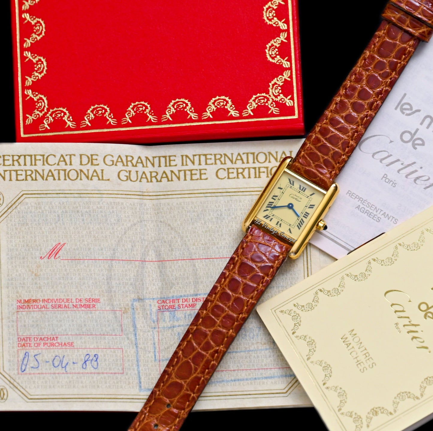 Cartier Gold Plated Must de Tank Vermeil Creamy Dial 366001 Quartz w/Original Guarantee (SOLD)