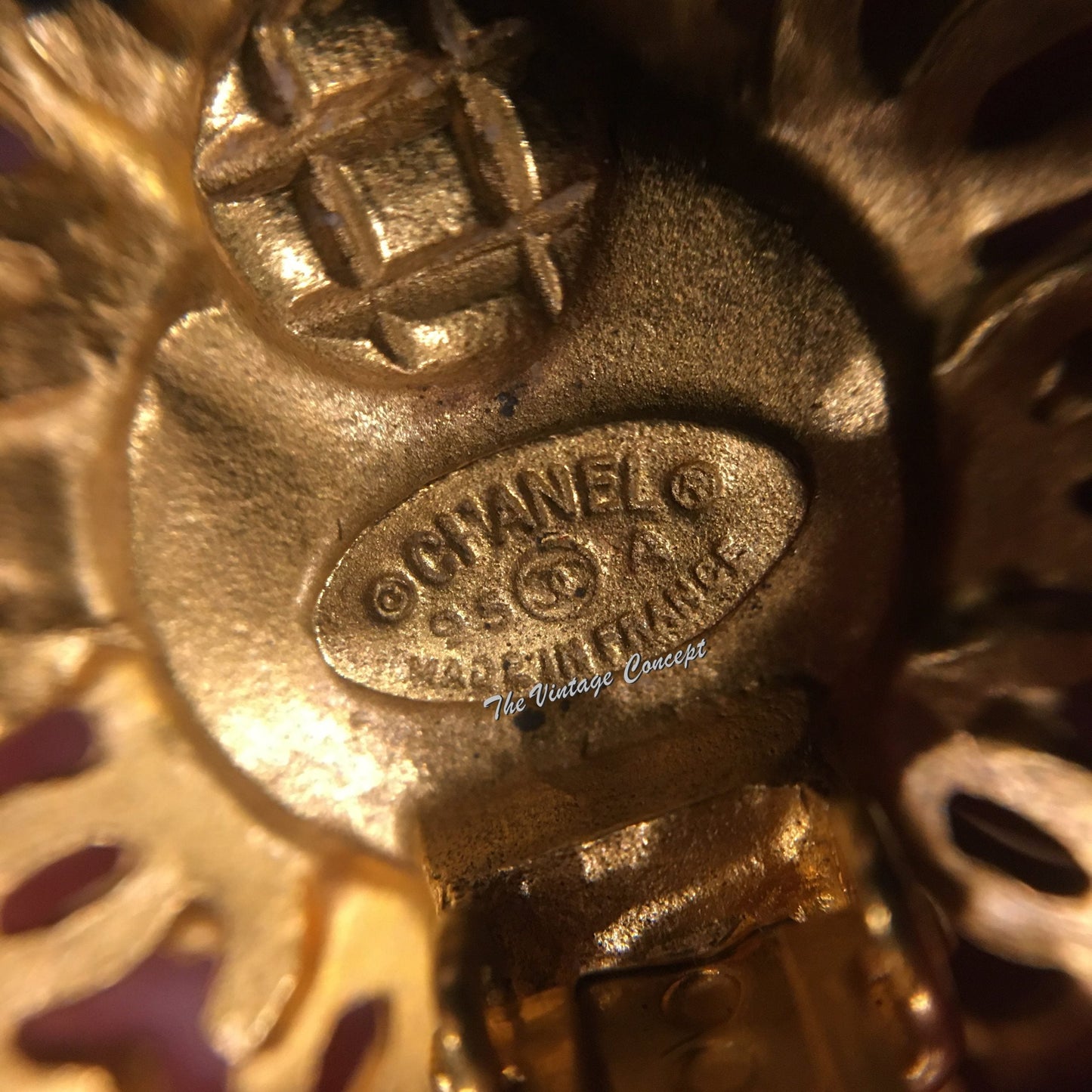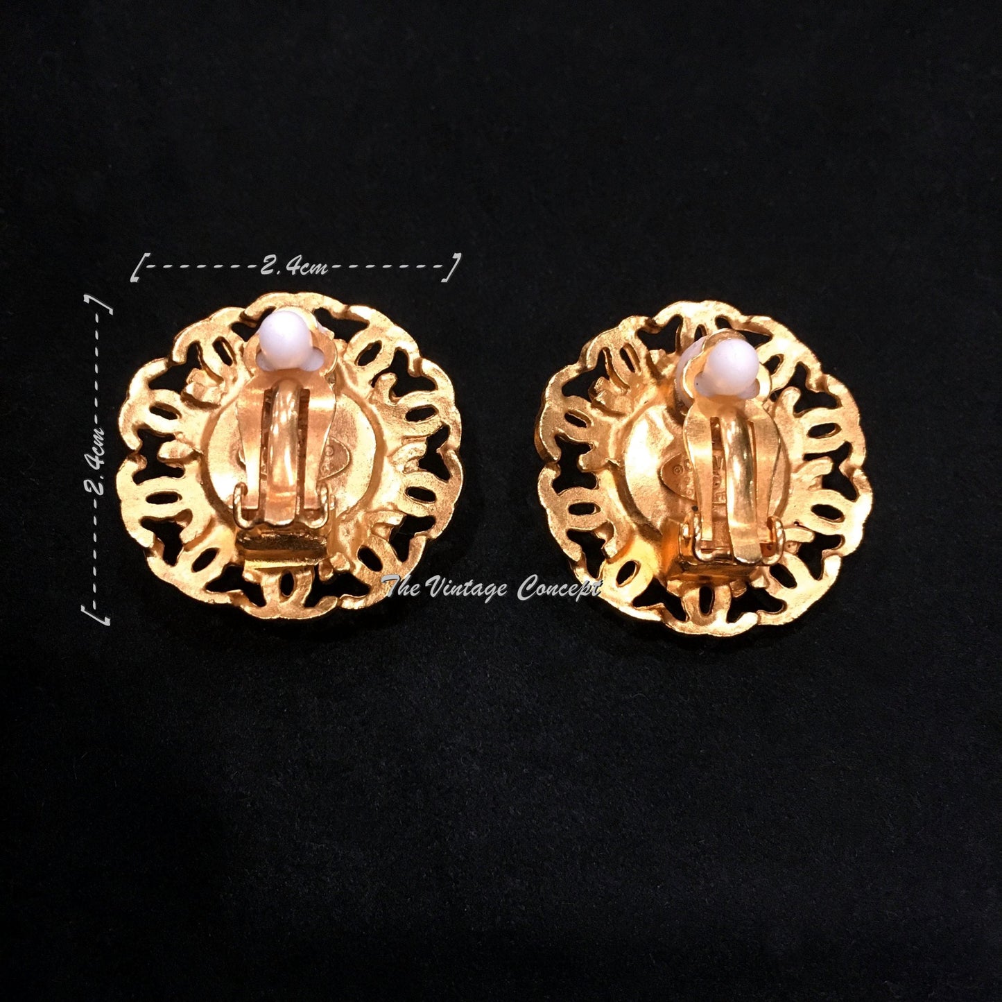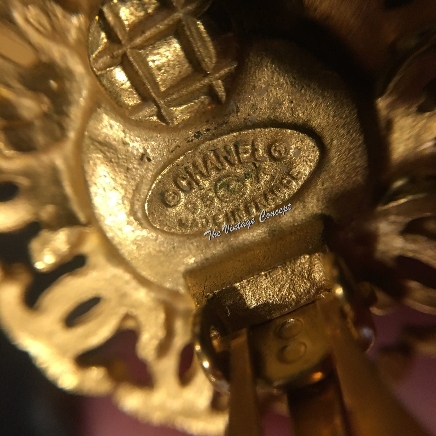 Chanel Gold Tone Blue Stone Logo Clip Earrings 95A (SOLD)