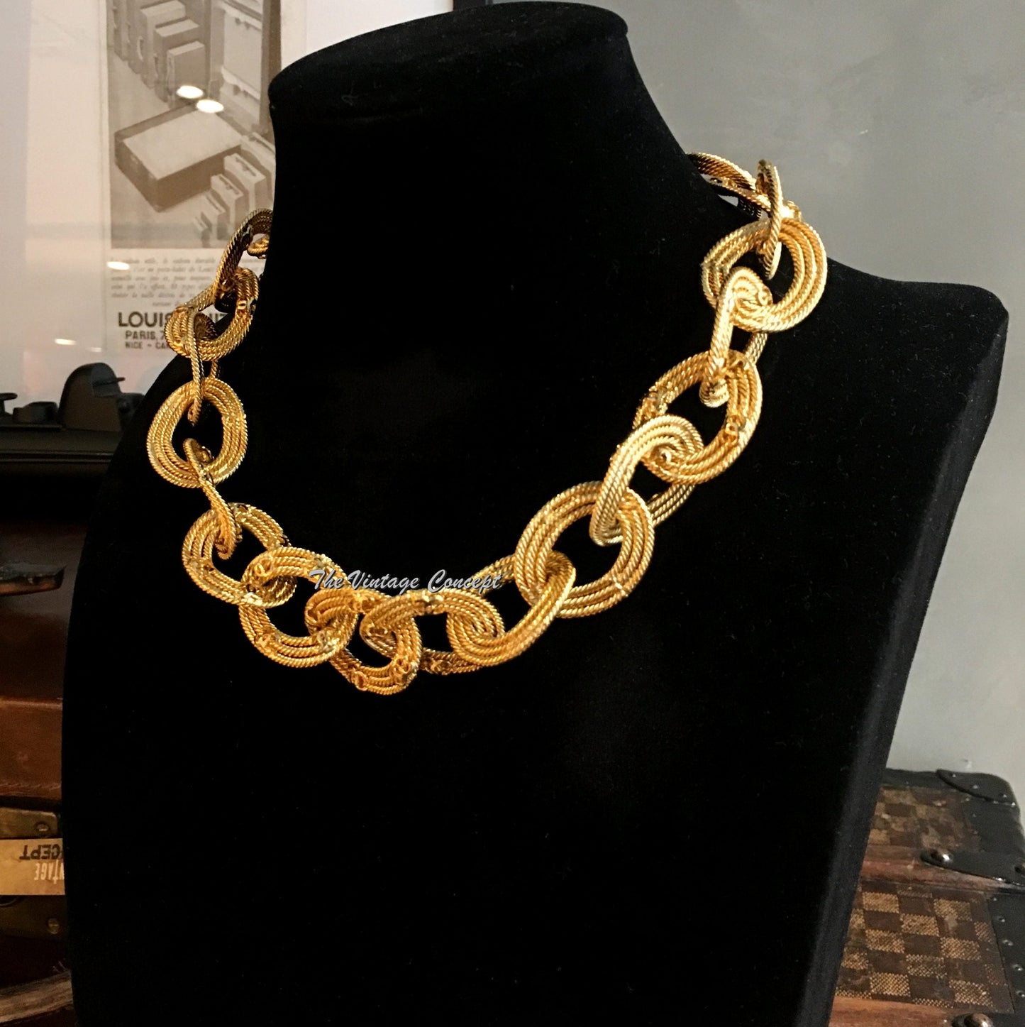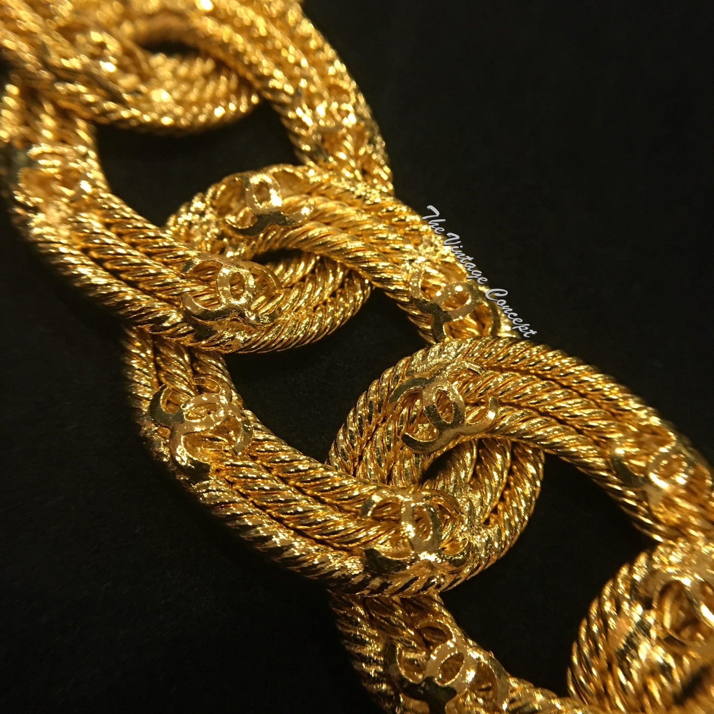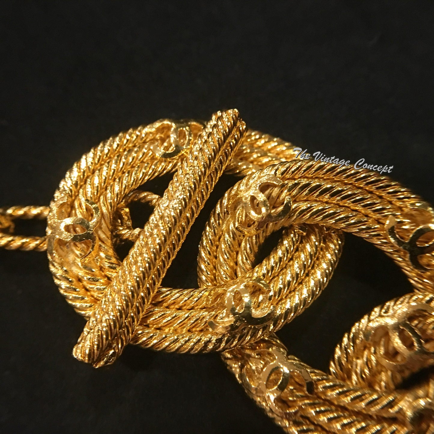 Chanel Gold Tone Chain Ring CC Logo Short Necklace "2 8" 1989/91 (SOLD)