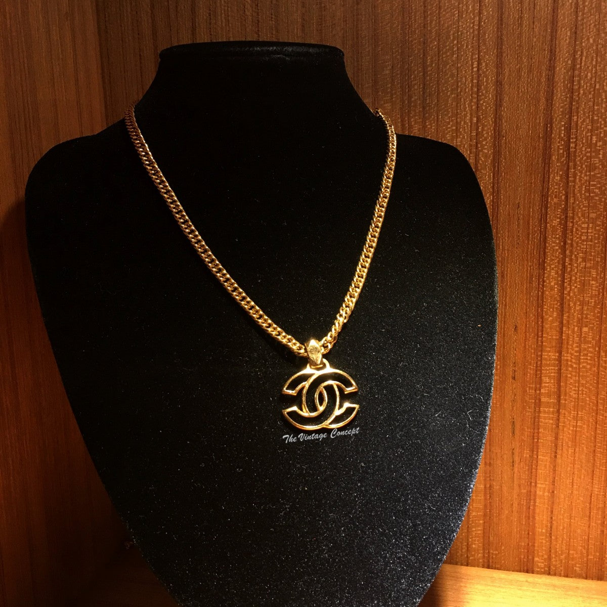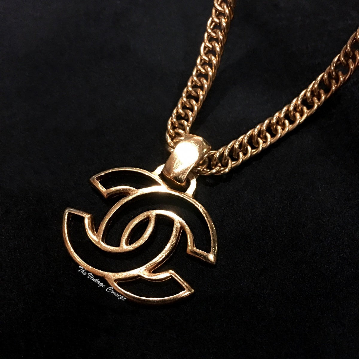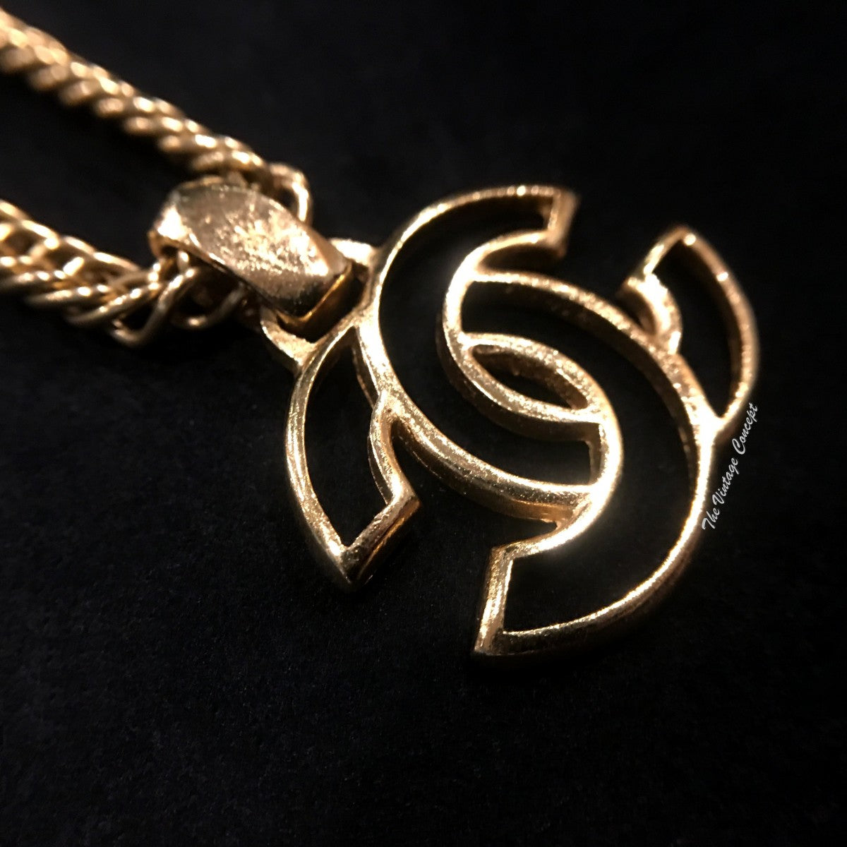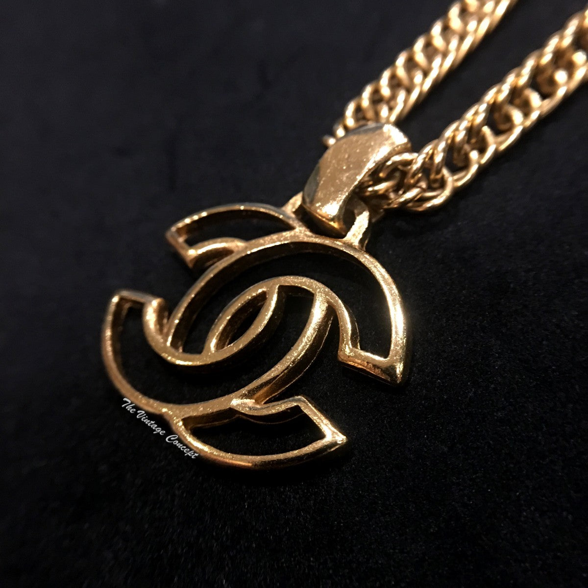 Chanel Gold Tone Hollow Logo Necklace 98A (SOLD)