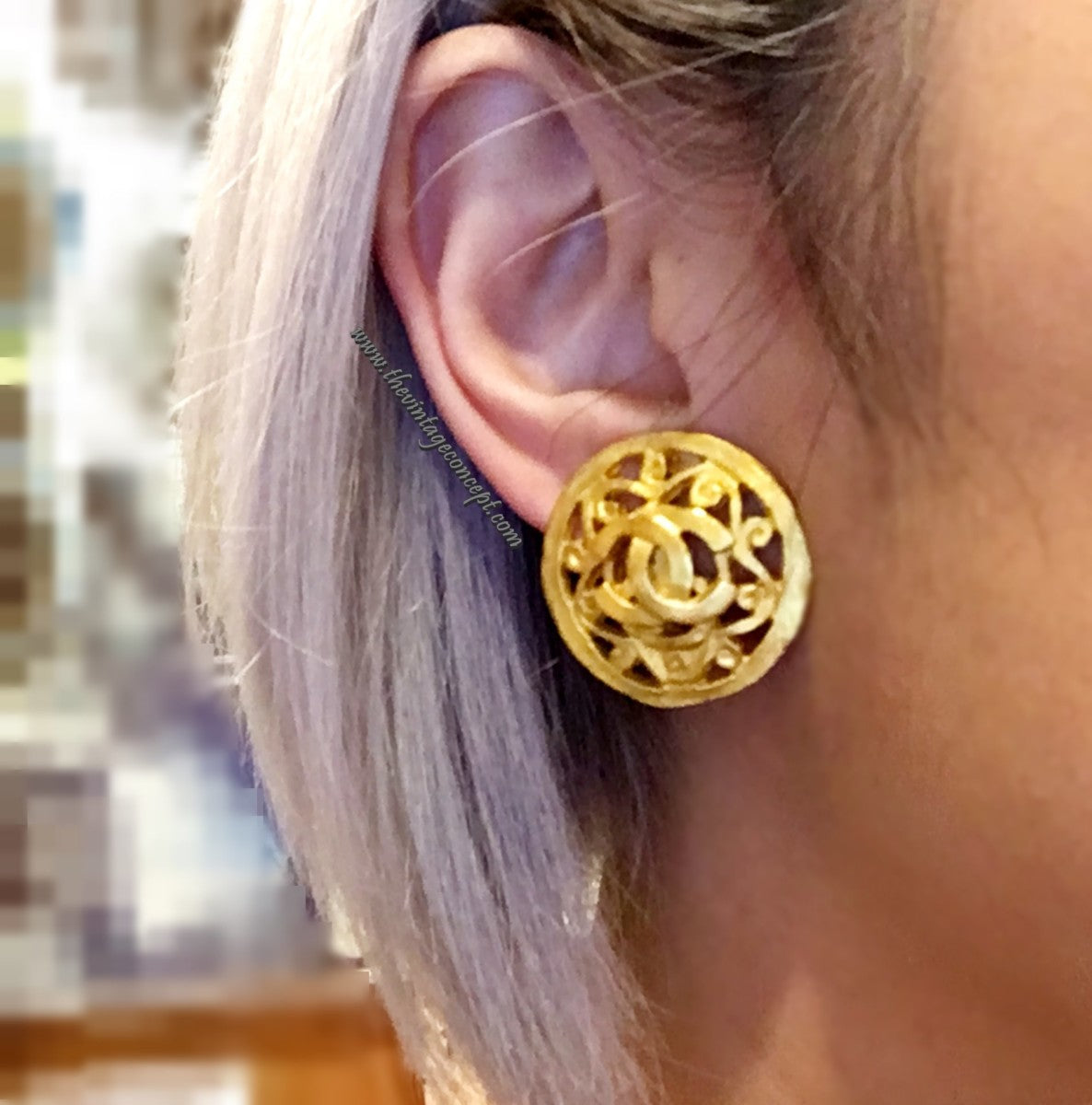 Chanel Gold Tone Hollow with Logo Clip Earring (SOLD)