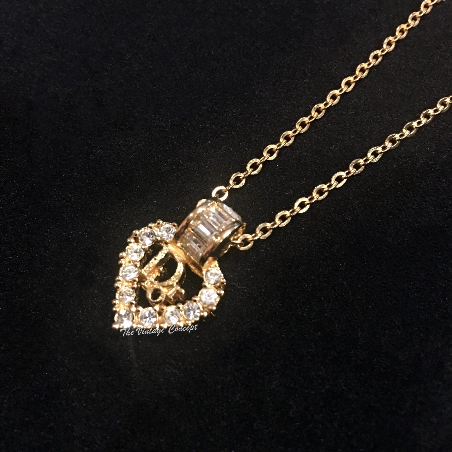 Dior Gold Tone "Dior" Heart Shape w/ Rhinestones necklace (SOLD)