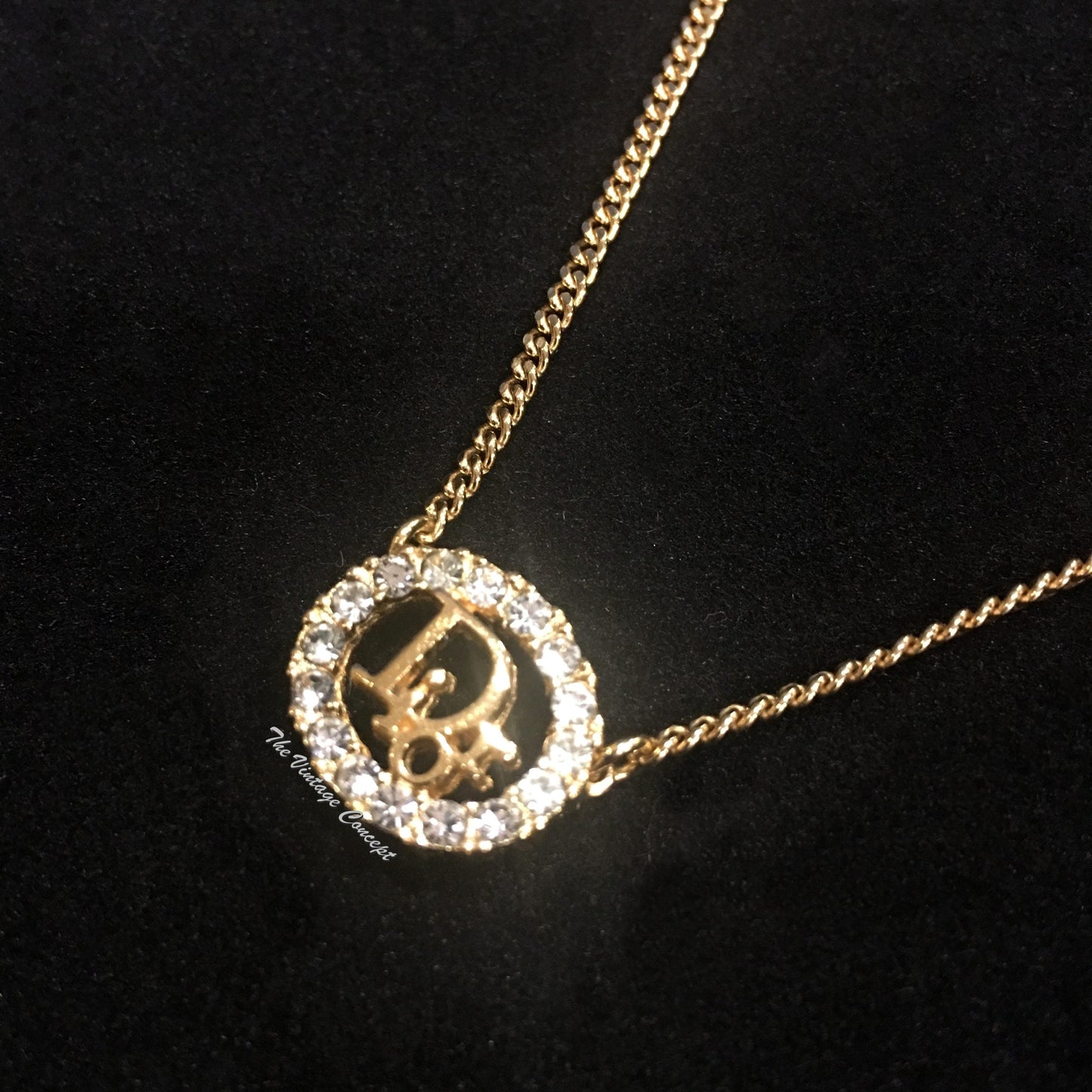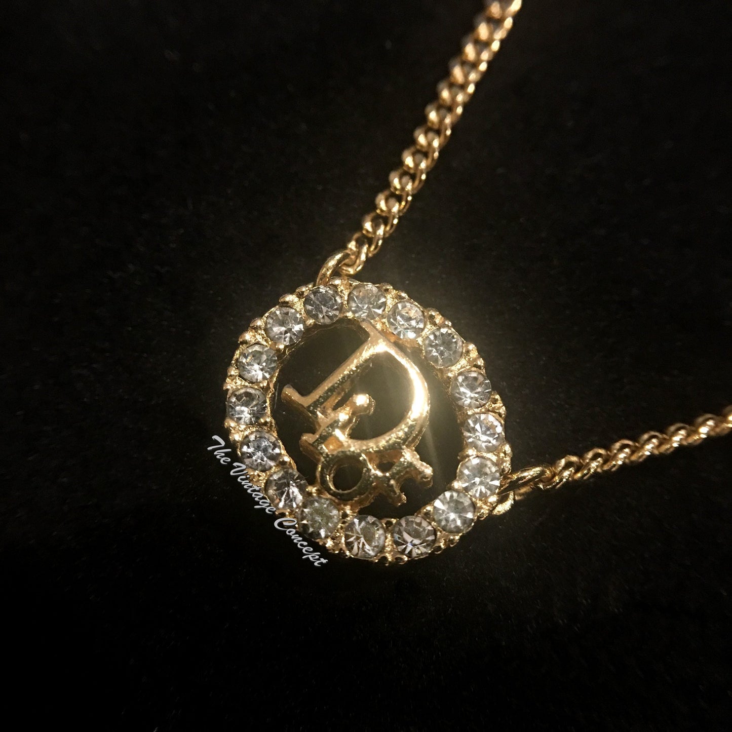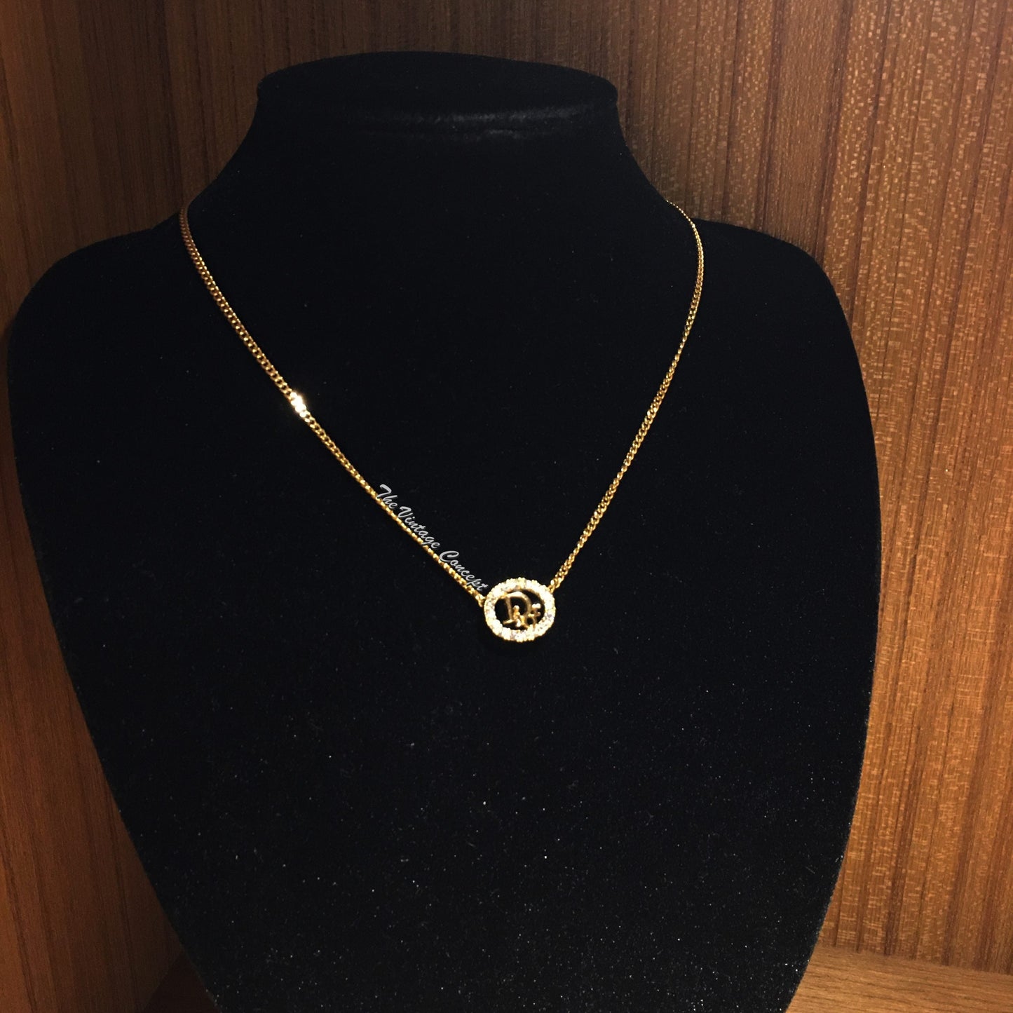 Dior Gold Tone "Dior" Oval Shape w/ Rhinestones necklace (SOLD)