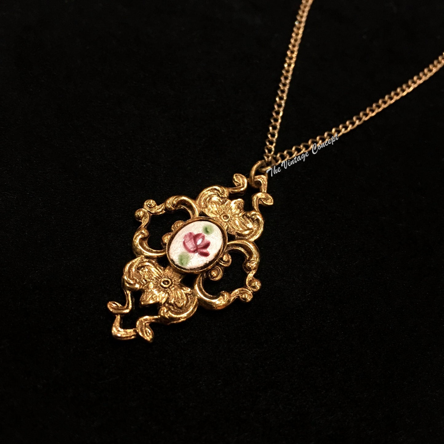 Gold Tone Victorian Small Pendant Necklace 1928 (SOLD)