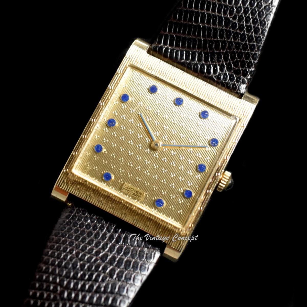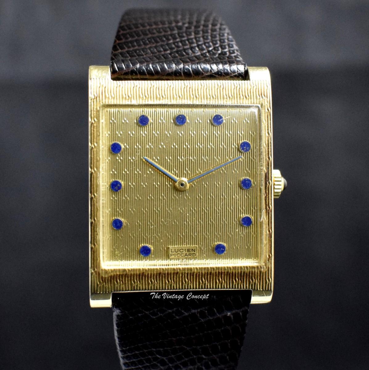 Lucien Piccard Large 14K Yellow Gold Square Lapis Indexes Manual Wind (SOLD)