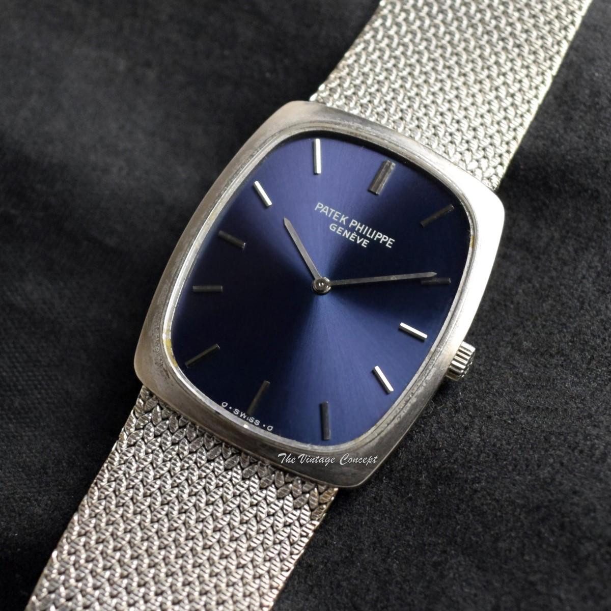 Patek Philippe 18K White Gold Blue Dial 3567 Manual Wind Bracelet Watch (SOLD)