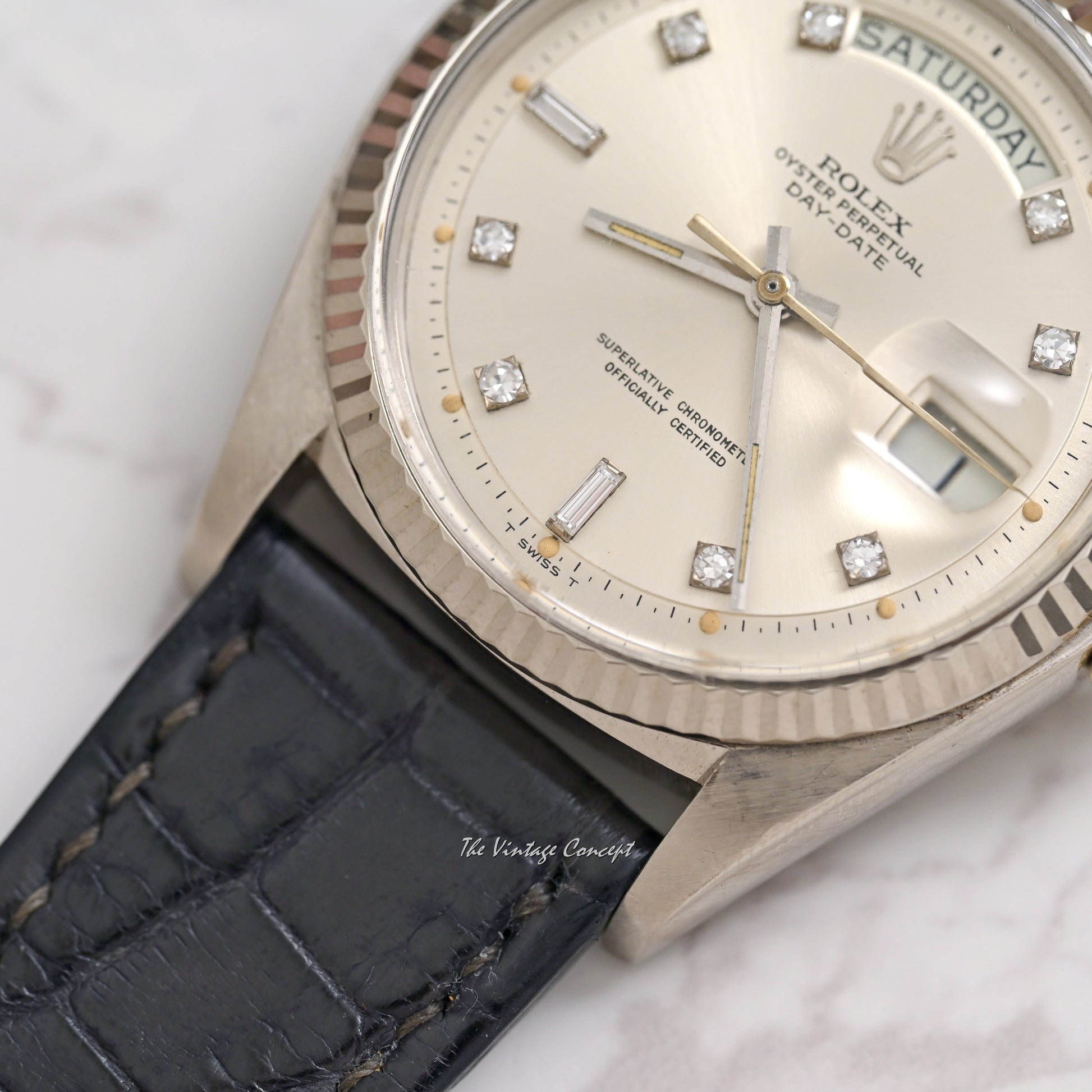 Rolex 18K White Gold Day-Date Silver Dial with Diamond Indexes Ref. 1803