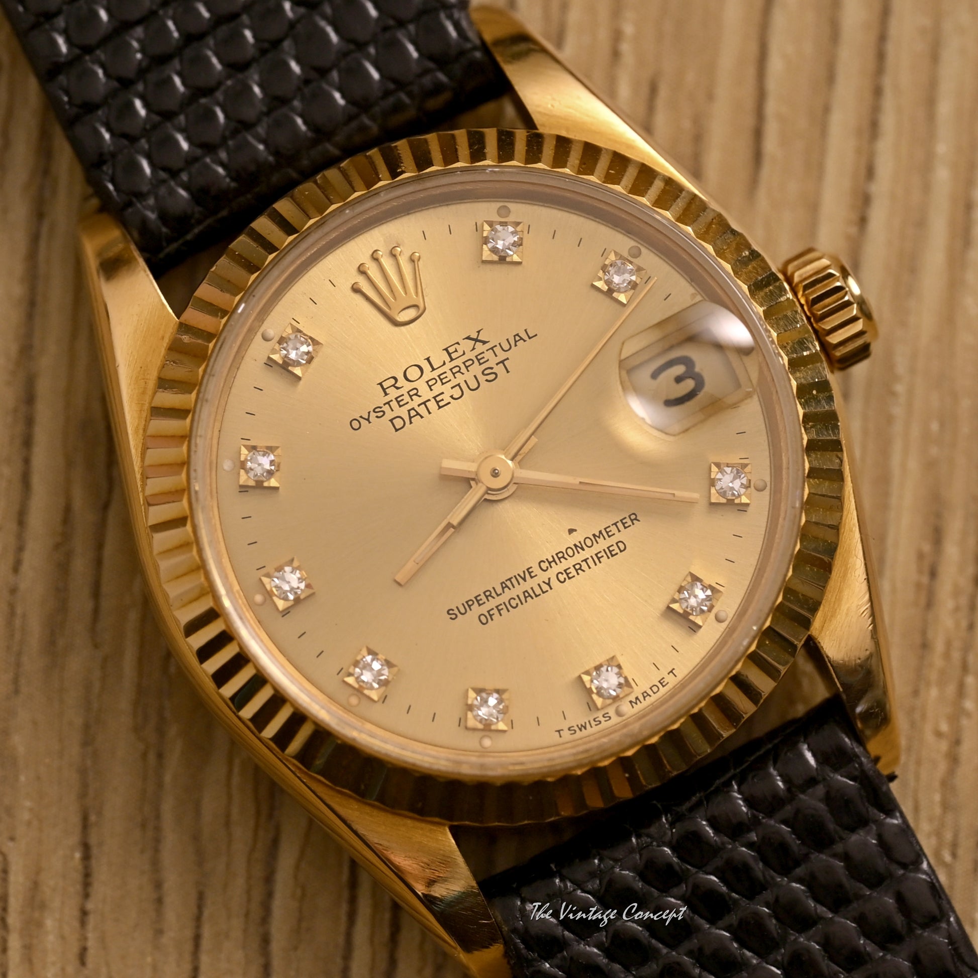 Rolex 18K Yellow Gold 31mm Datejust Gold Dial with Diamond Indexes Ref. 68278