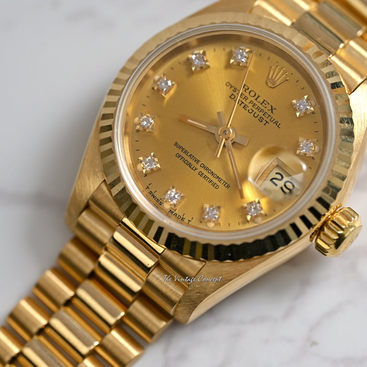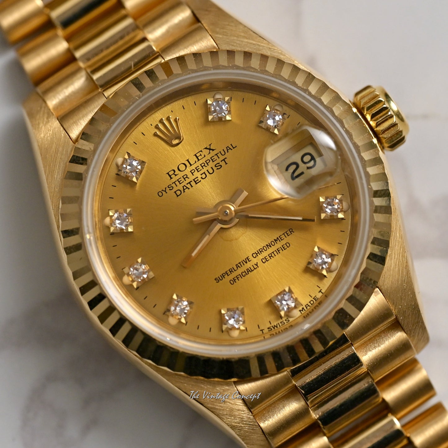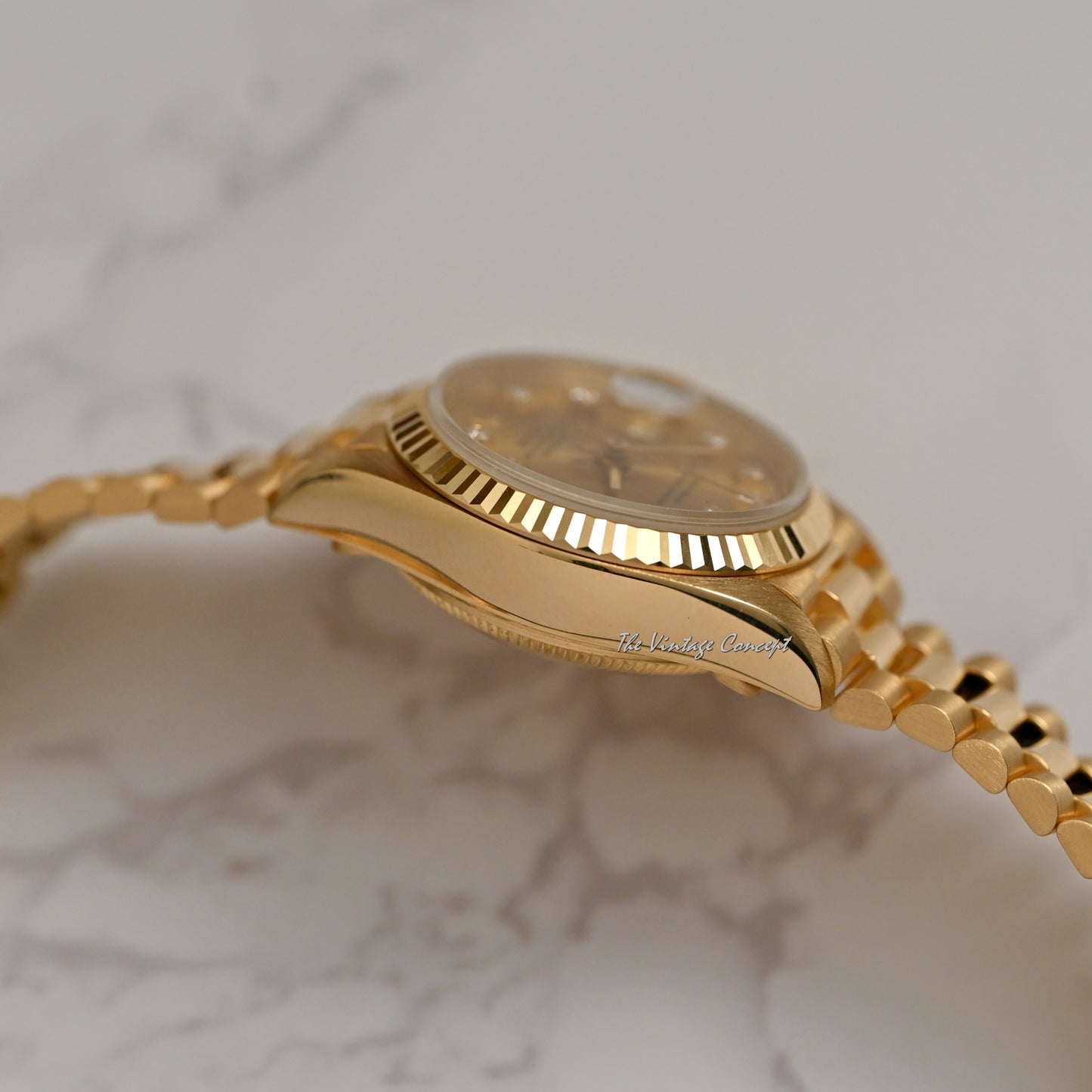 Rolex 18K Yellow Gold Lady Datejust Gold Dial Diamond Indexes 69178 w/Original Paper (SOLD)