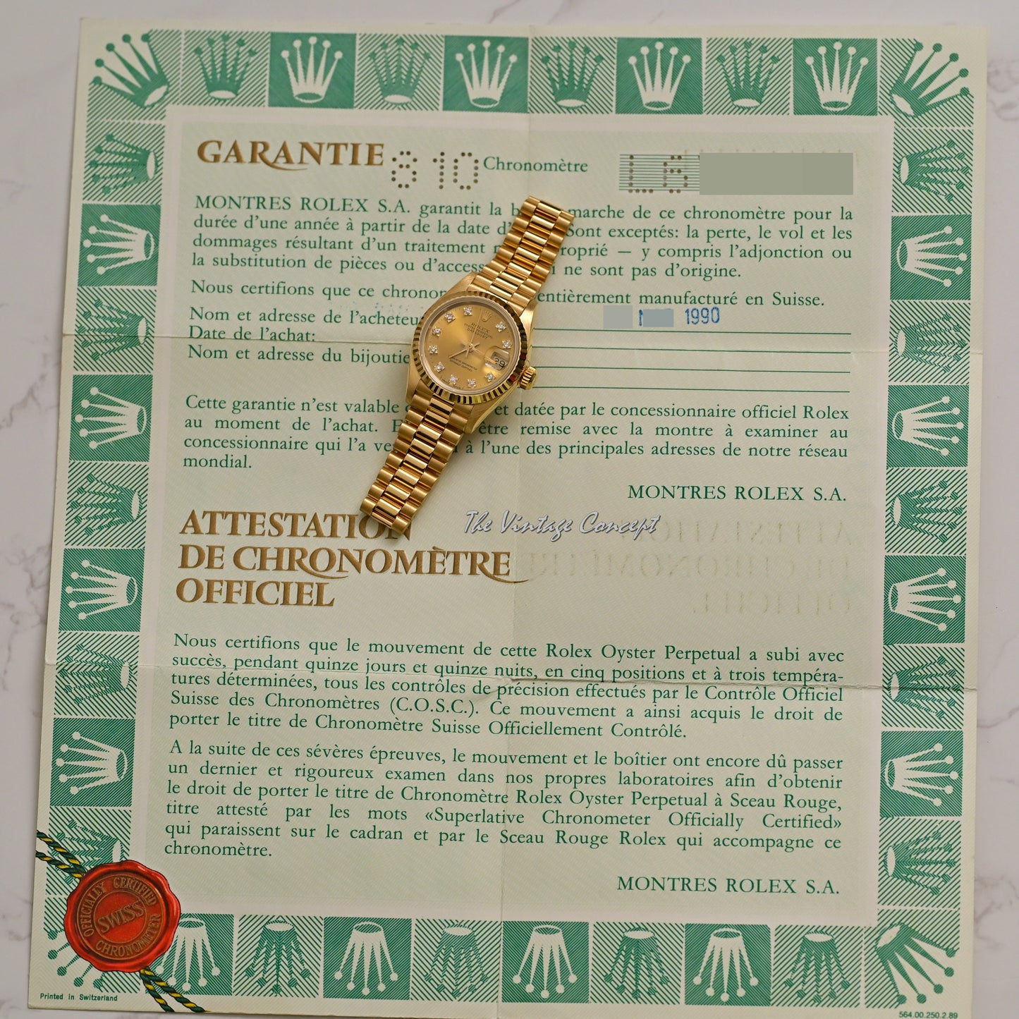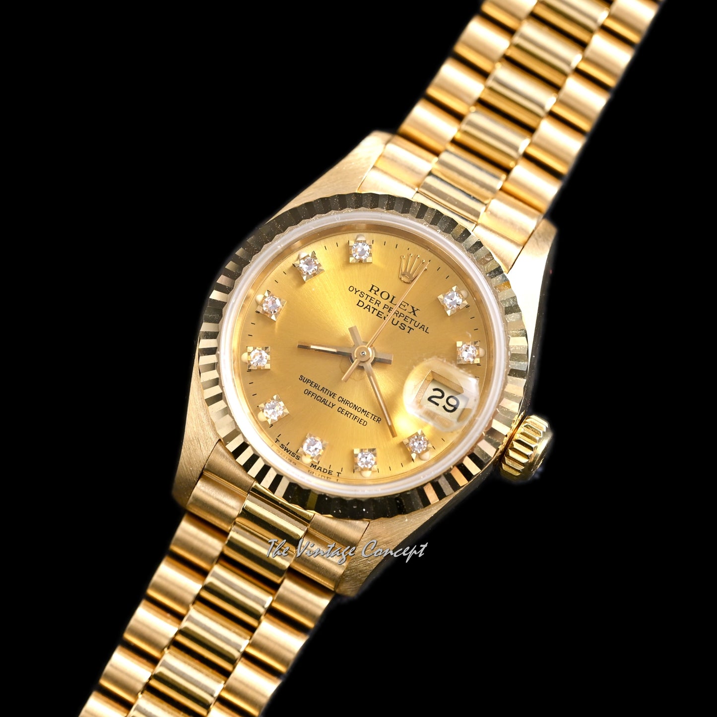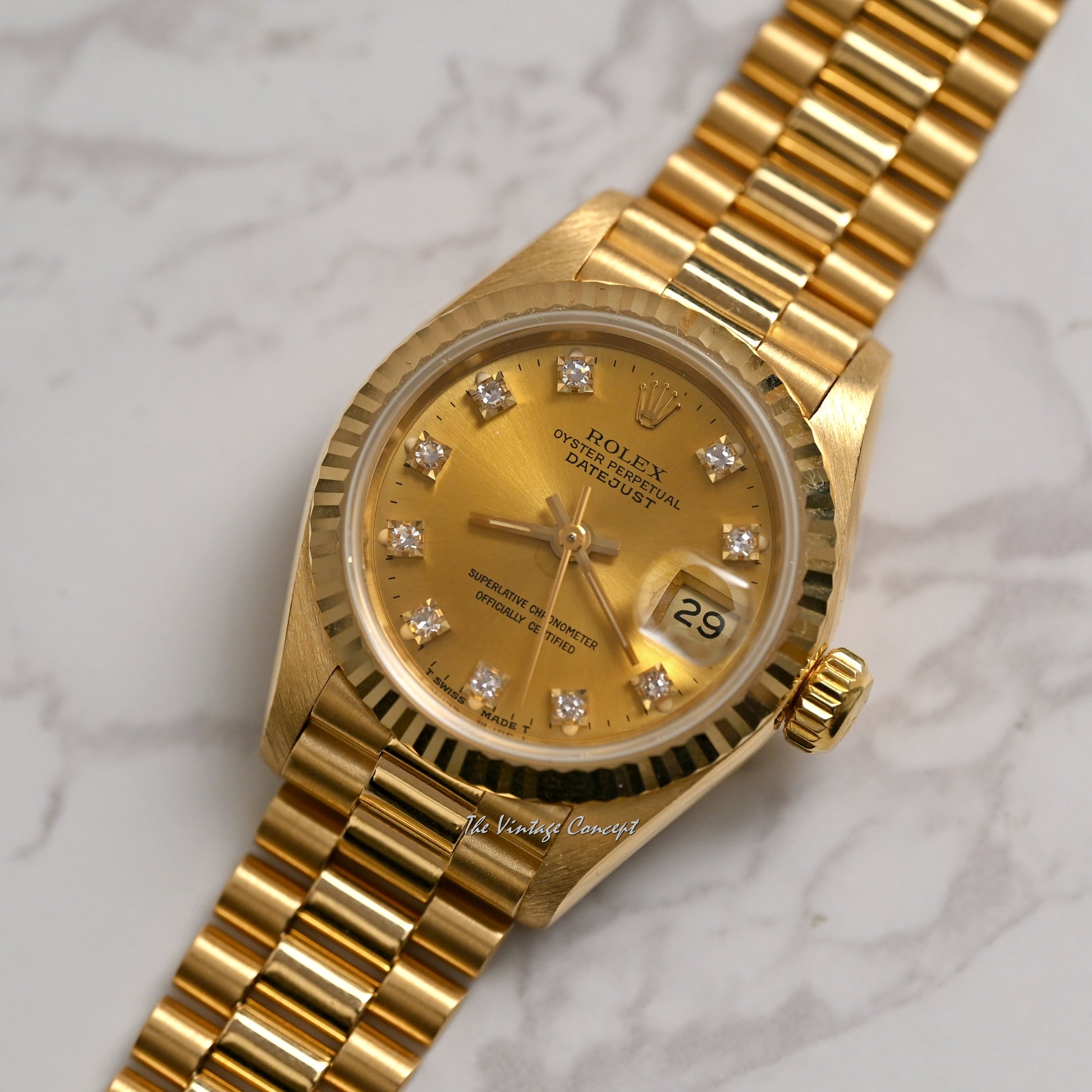 Rolex 18K Yellow Gold Lady Datejust Gold Dial Diamond Indexes 69178 w/Original Paper (SOLD)
