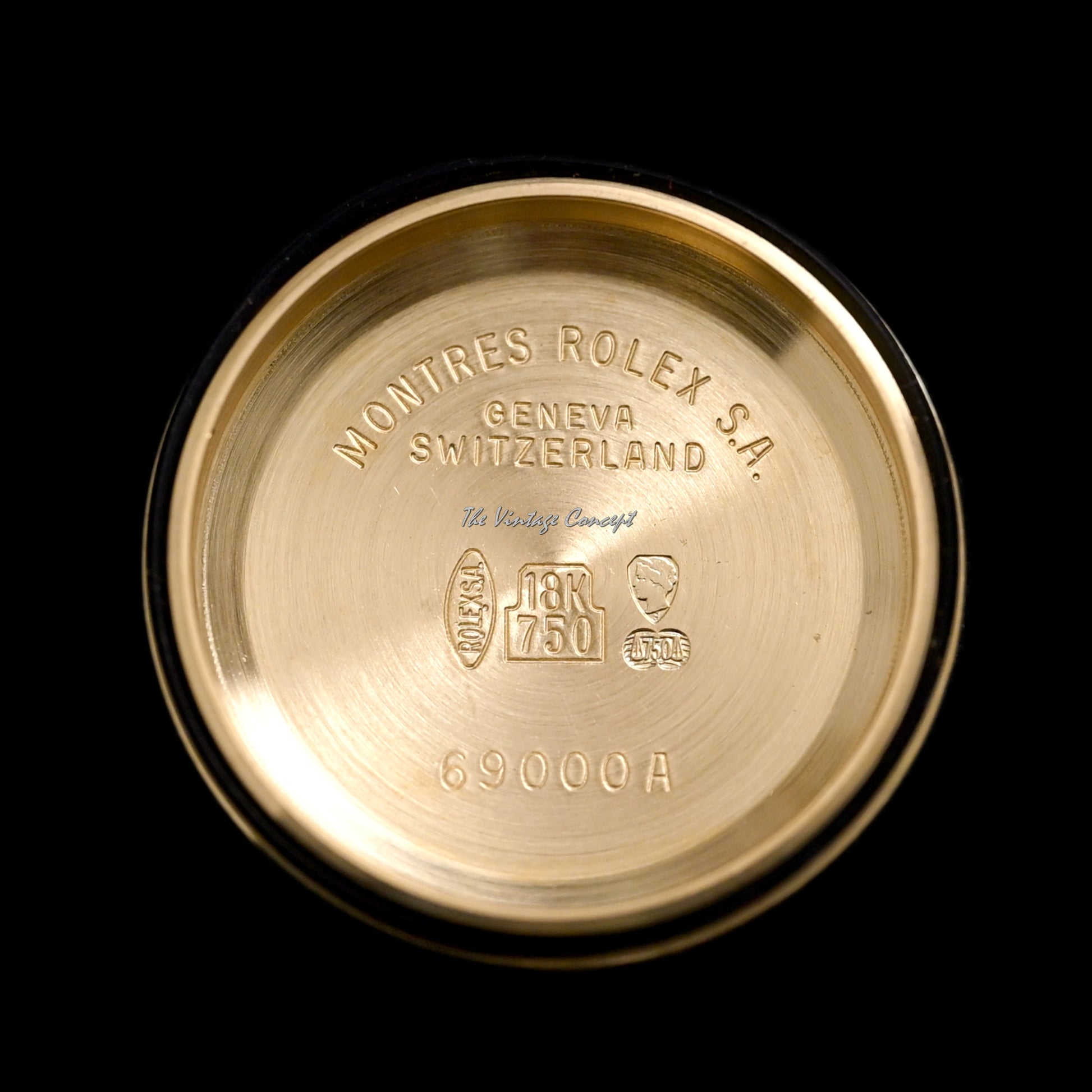 Case: 18K Yellow Gold Case with 26mm in diameter without crown; show sign of wear with slight polish from previous and inner case back stamped 69000A