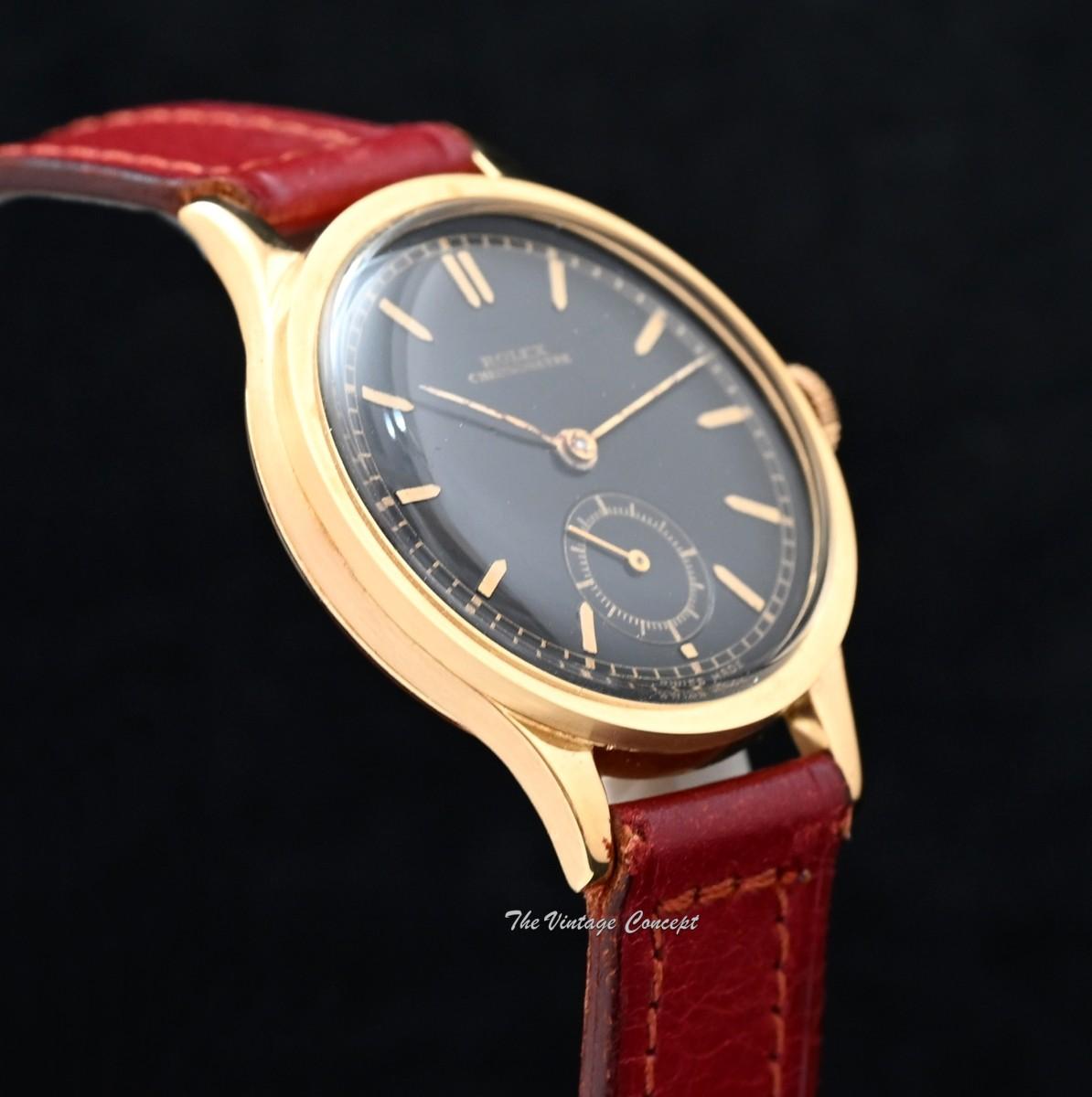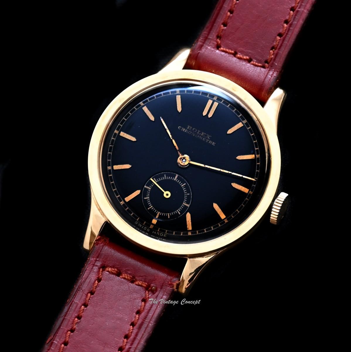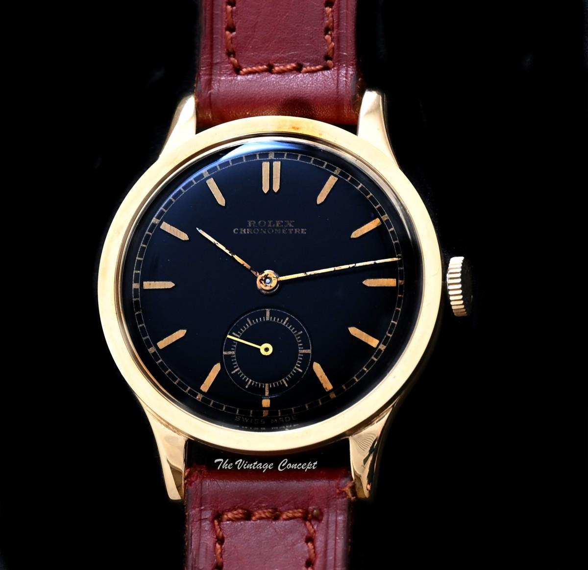 Rolex Chronometer 18K YG Black Glossy Gilt Dial Manual Wind 2582 (SOLD)