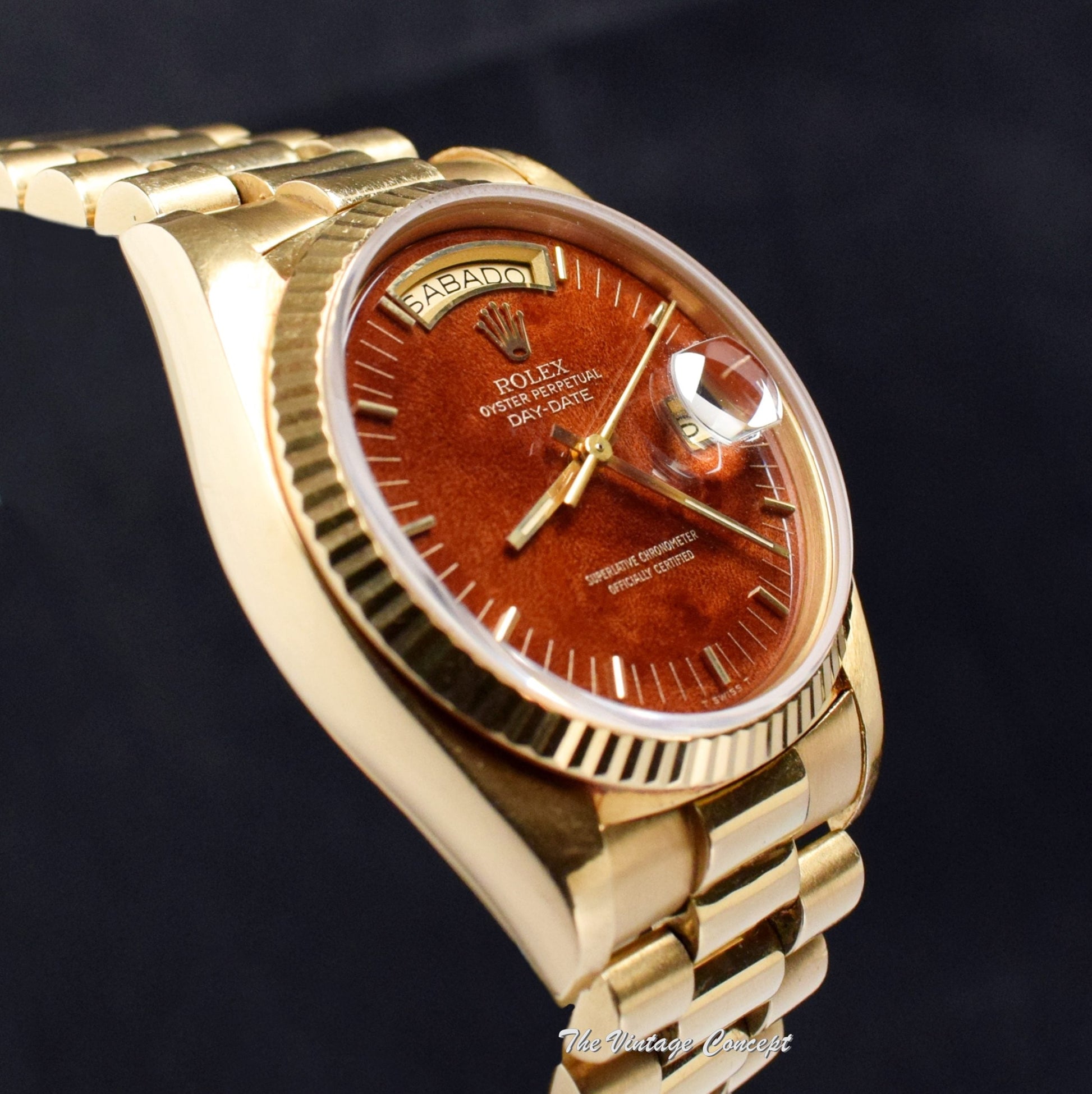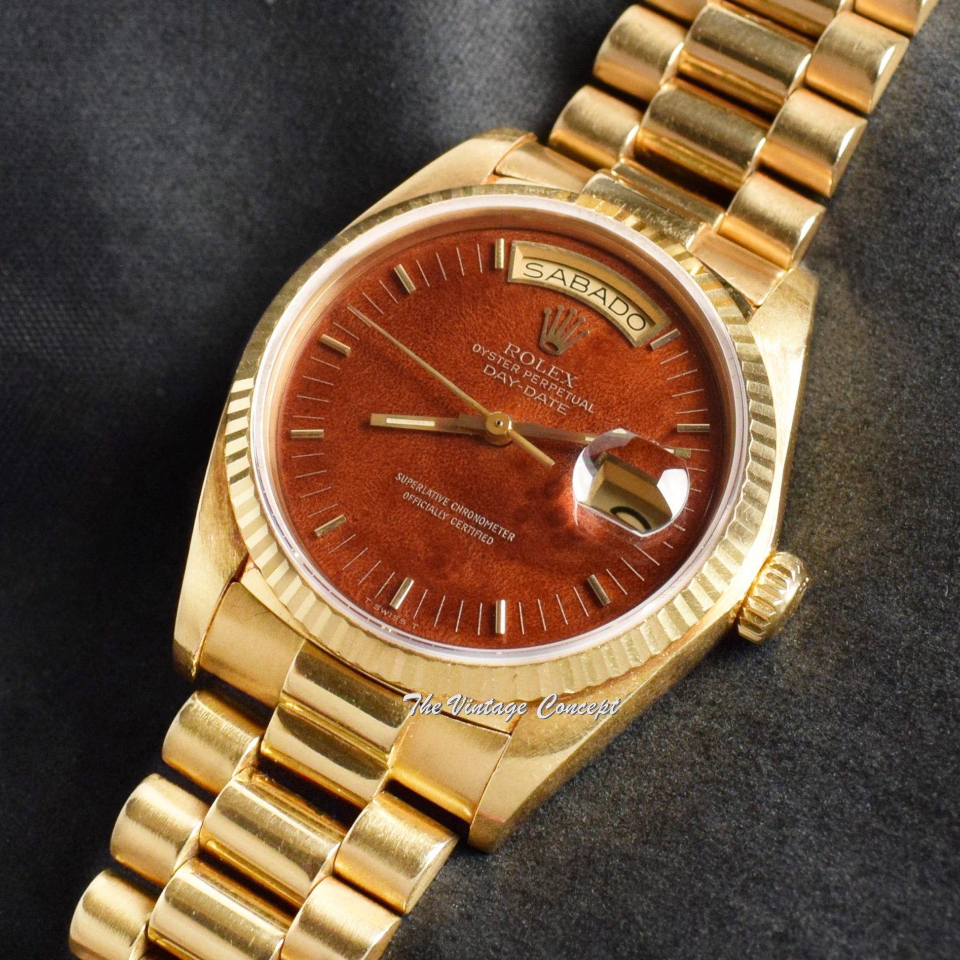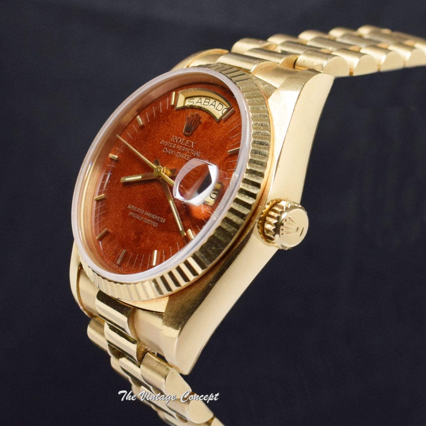 Rolex Day-Date 18K YG Wood Brown Dial 18038 (SOLD)