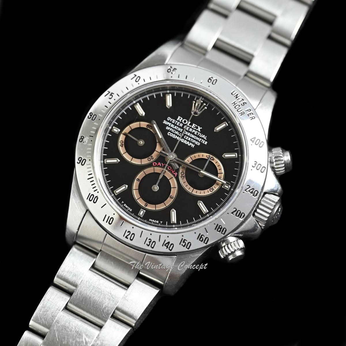 Dial: Excellent Aged Condition Black Dial where the sub registers have already turned into a darker cream color known as the “Patrizzi Dial” along with matching hands