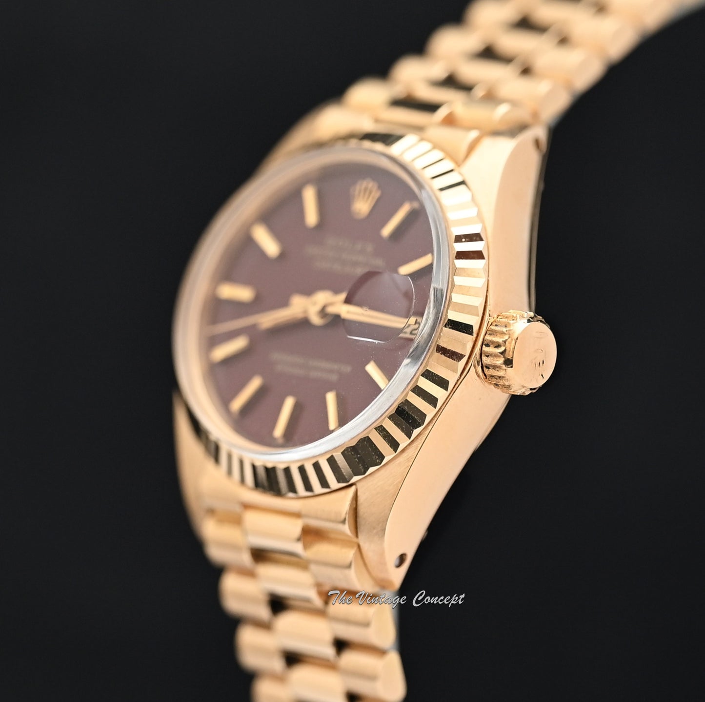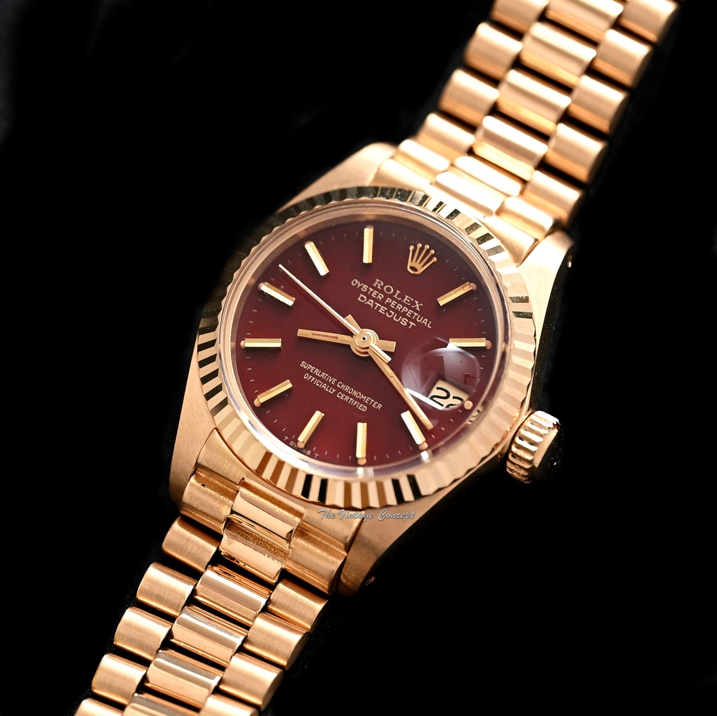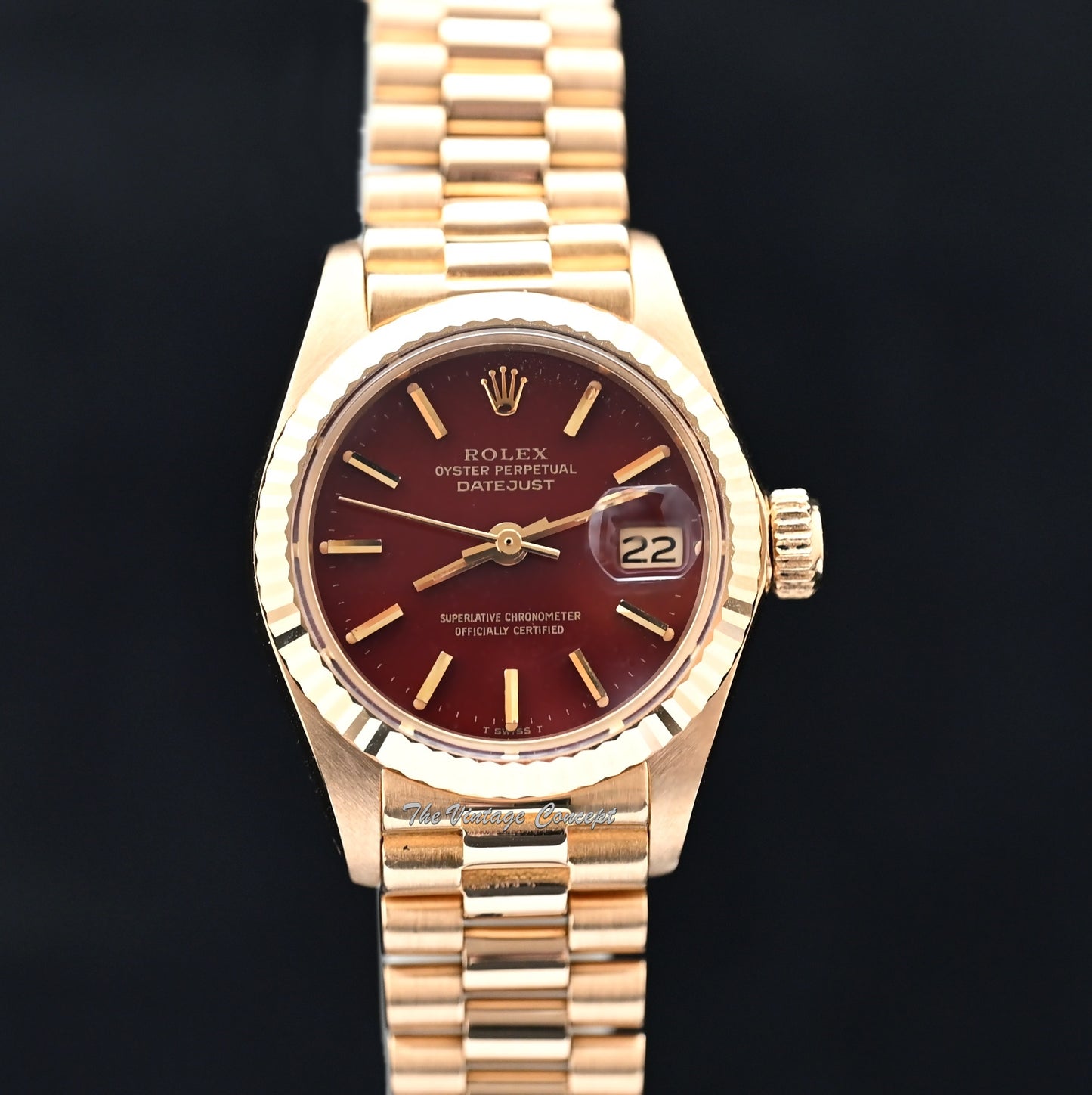 Rolex Lady Datejust 18K Yellow Gold Stella Red Oxblood Dial 6917 w/Bracelet (SOLD)