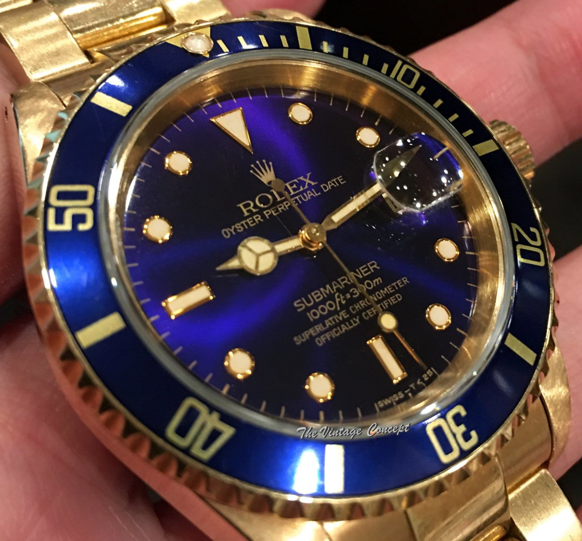 Rolex Submariner 18K YG Blue Purple Dial 16618 (SOLD)